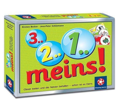| Name | 3.. 2.. 1.. meins! | | BGG Gruppe | 3.. 2.. 1.. meins! (ggf. fremdsprachig etc.) | | Bild | /pic1115204.jpg) | | Erscheinungsjahr | 2007 | | Direktaufruf BGG | https://boardgamegeek.com/boardgame/31317 | | Kommentar | 10.01.04.01 (incl. Fachnummer) | | Fachnummer | 10.01.04.01 | | aktualisiert | 2026-03-24 00:05:10 | | Typ | BGG (Boardgame) | | Autor(en) | Jens-Peter Schliemann Kirsten Becker | | Maße in mm | 230 x 298 x 63 (Breite x Länge x Höhe) | | Mindestspieleranzahl | 2 | | Maximalspieleranzahl | 5 | | Durchschnittsspieldauer | 30 Minuten | | Minimalspieldauer | 30 Minuten | | Maximalspieldauer | 30 Minuten | | Mindestalter | 0 Jahre | | Verlag(e) | Winning Moves Germany | | Kategorie(n) | Card Game | | Mechanismen | Auction / Bidding Open Drafting Set Collection |
