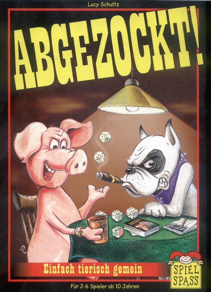 | Name | Abgezockt! | | BGG Gruppe | Abgezockt! (ggf. fremdsprachig etc.) | | Bild | /pic278767.jpg) | | Erscheinungsjahr | 2006 | | Direktaufruf BGG | https://boardgamegeek.com/boardgame/33076 | | Kommentar | 21.05.01.03 (incl. Fachnummer) | | Fachnummer | 21.05.01.03 | | aktualisiert | 2026-01-19 12:22:37 | | Typ | BGG (Boardgame) | | Autor(en) | Lucy Schultz | | Maße in mm | 190 x 274 x 66 (Breite x Länge x Höhe) | | Gewicht | 537 Gramm | | Mindestspieleranzahl | 2 | | Maximalspieleranzahl | 6 | | Durchschnittsspieldauer | 30 Minuten | | Minimalspieldauer | 30 Minuten | | Maximalspieldauer | 30 Minuten | | Mindestalter | 7 Jahre | | Verlag(e) | Spiel Spass | | Kategorie(n) | Animals Card Game Dice Party Game | | Mechanismen | Dice Rolling Hand Management Push Your Luck Re-rolling and Locking Take That |